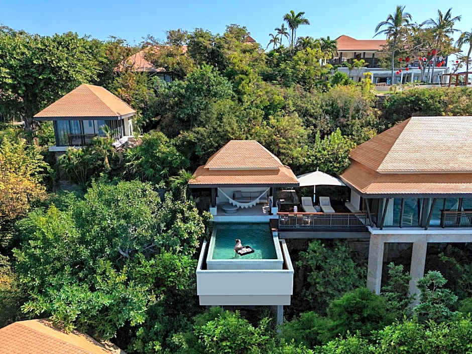 Each villa is furnished and features a tropical wooden sun deck and a veranda as well as natural light flows through floor-to-ceiling windows. Enjoy open living and outdoor dining areas, a spacious bathroom and a private garden. There is a private heated swimming pool and the villa offers views of Puerto Marques.